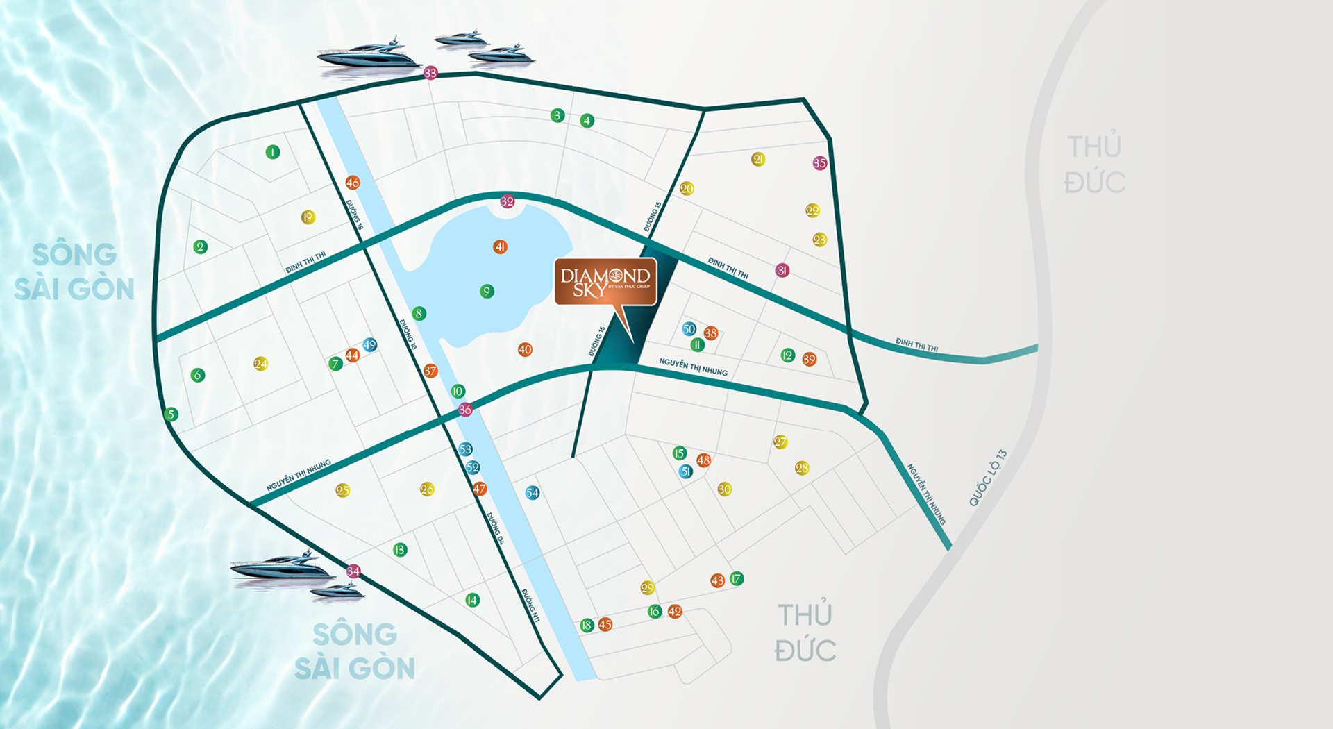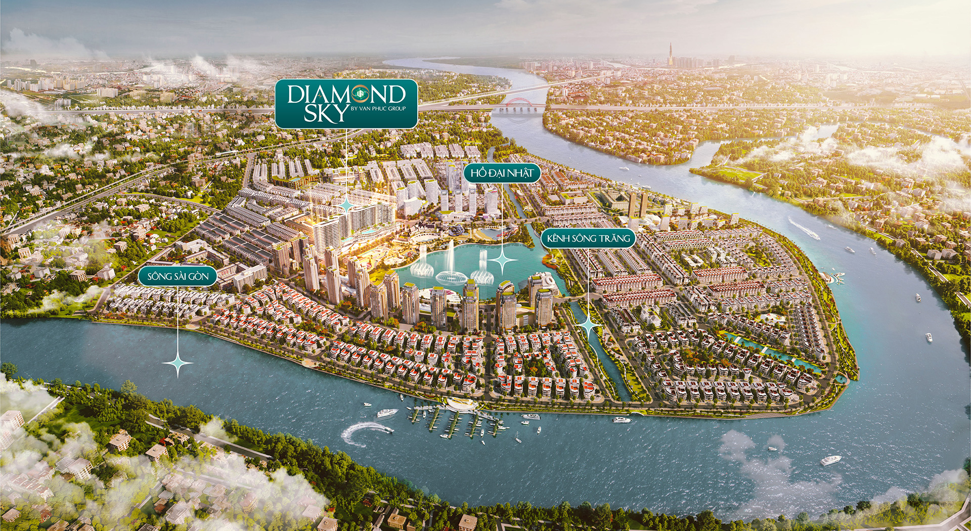Diamond Sky nằm tại trung tâm Van Phuc City. Địa thế tụ khí sinh tài trong khu đô thị với 03 mặt giáp sông Sài Gòn. Cách Quận 1, 3 và sân bay Tân Sơn Nhất chỉ 10 phút, mặt tiền Quốc lộ 13 đang mở rộng cùng tuyến Metro 3B thuận tiện cho di chuyển. Mang lại tiềm năng sinh lời lớn và bền vững cho khách hàng và nhà đầu tư.
