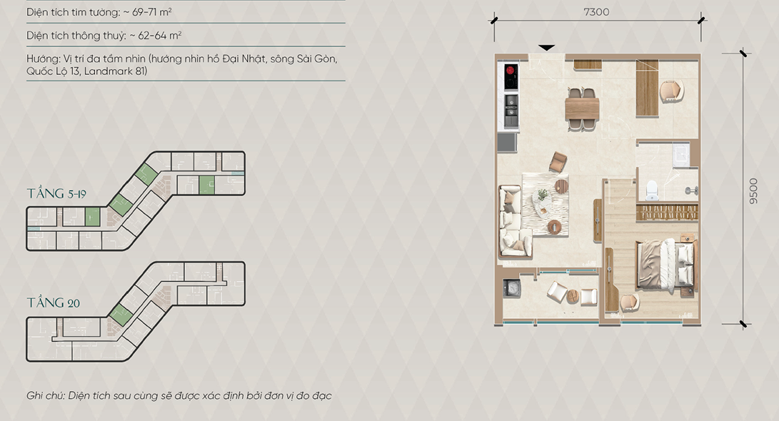 - Tầng 5–19: căn hộ điển hình